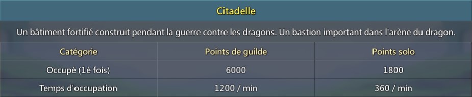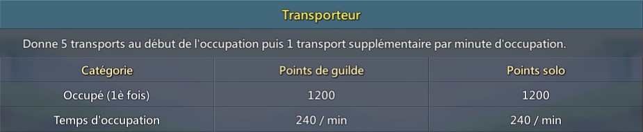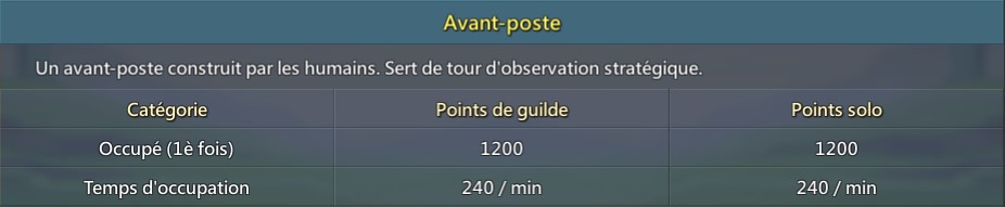 - Après avoir occupé un bastion, les guildes gagneront des points de guildes et des points solo chaque seconde.