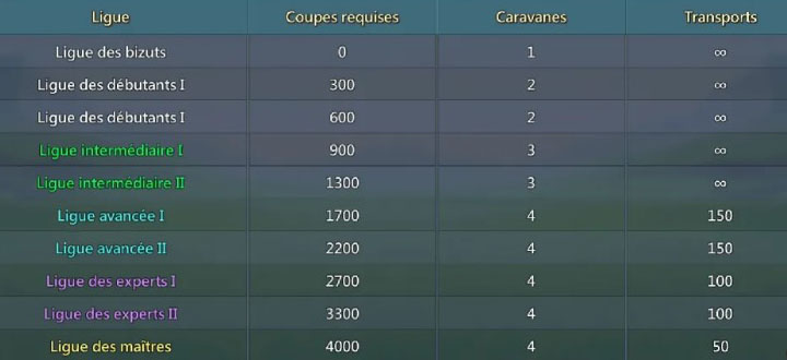- Dans les ligues supérieures, il y aura plus de bastions et de caravanes mais moins de transports.
